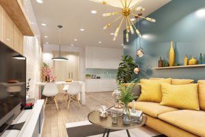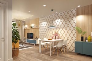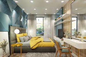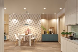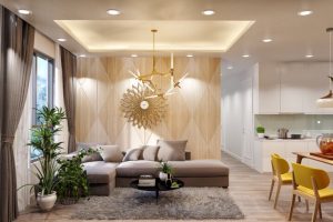 Bàn giao: Hoàn thiện, Nội thất cao cấp ( Trần thạch cao, sàn gỗ, kệ bếp, khóa cửa thông minh…)